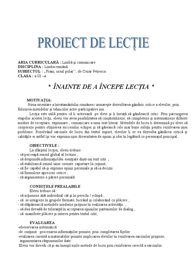 Fram Ursul Polar Plan De Idei