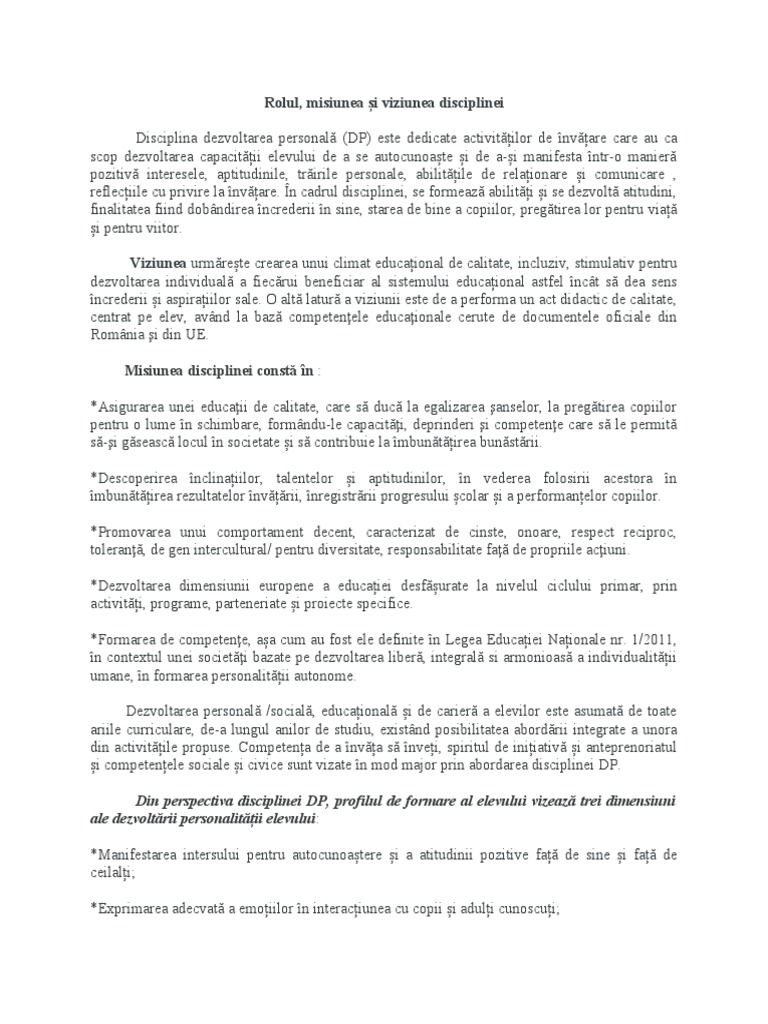 Rolul Misiunea și Viziunea Disciplinei