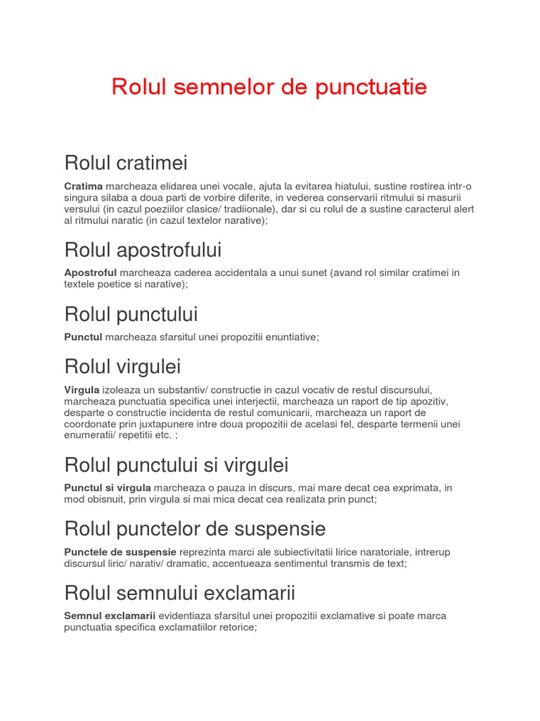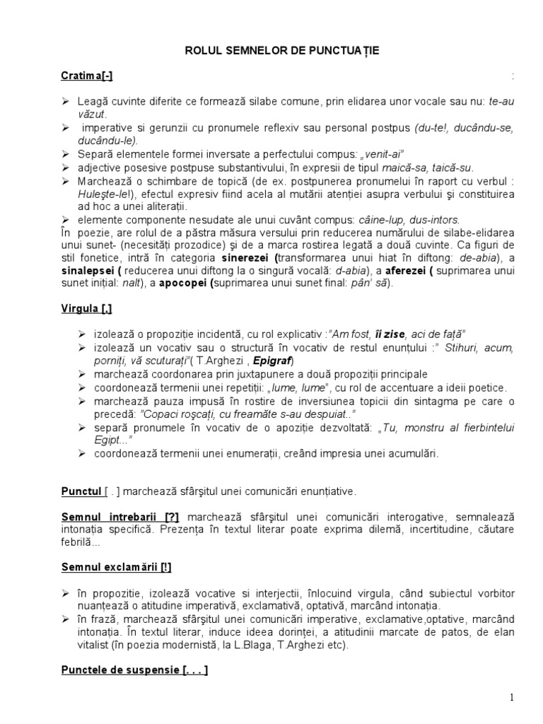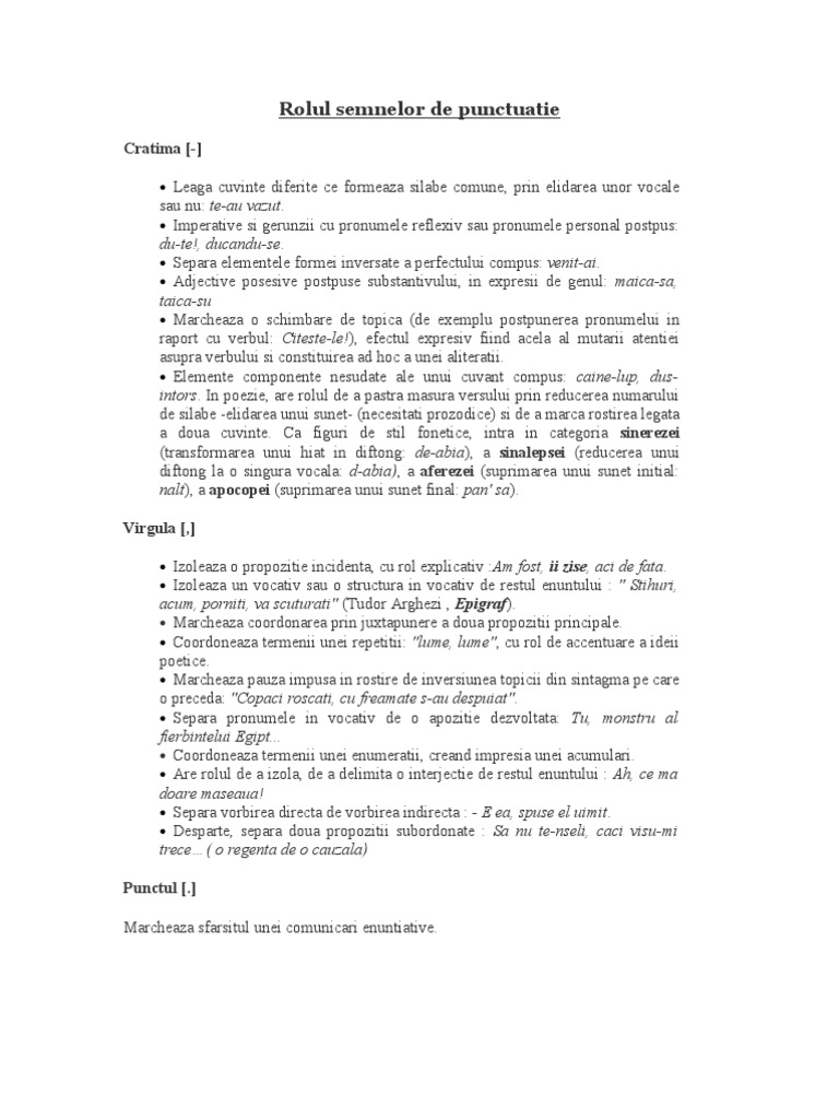 Rolul Semnelor De Punctuatie Si De Ortografie Temalaromana Ro