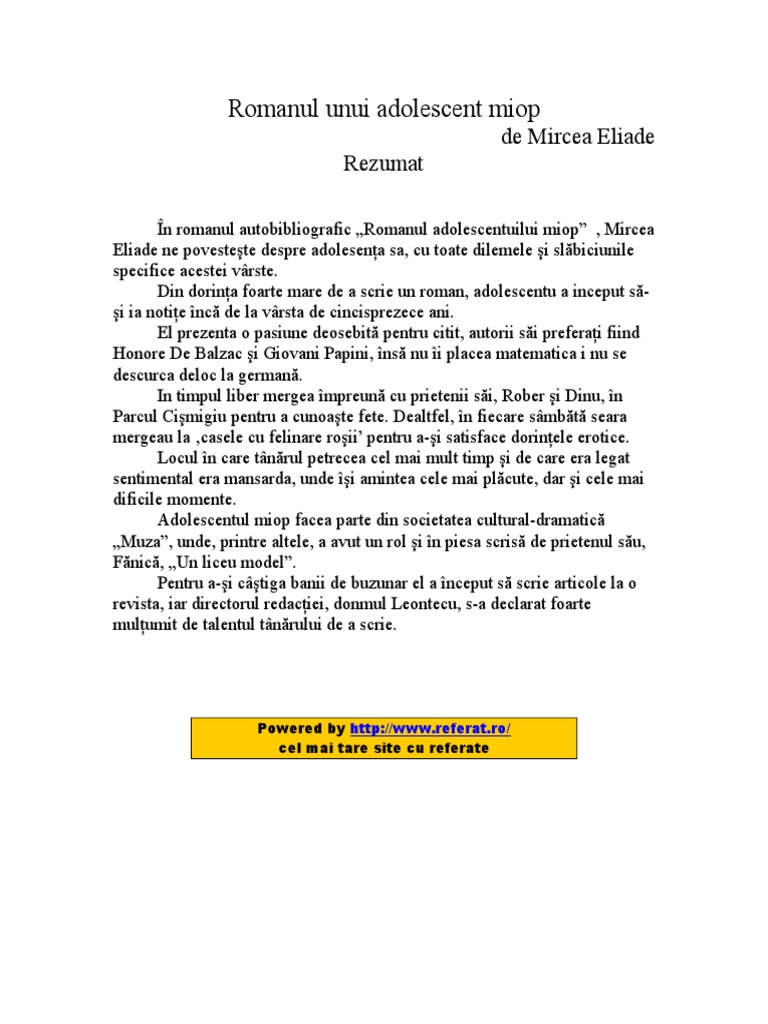 Referat Clopotel Ro Romanul Adolescentului Miop