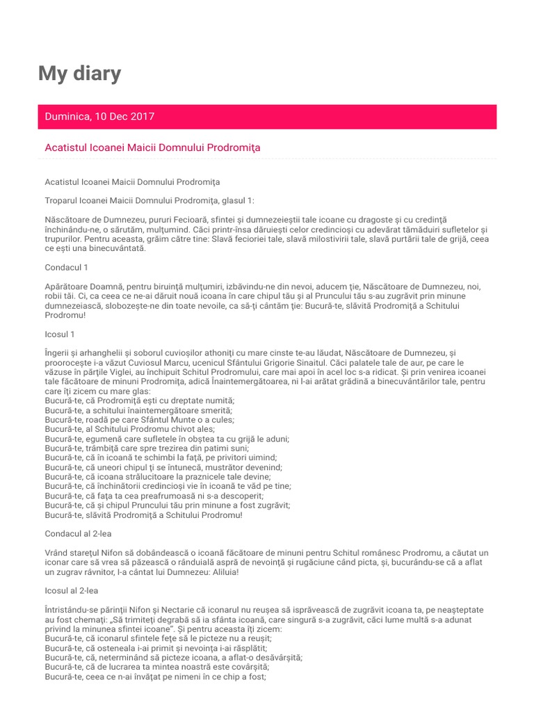 Canon De Rugăciune Către Născătoarea De Dumnezeu Si Pururea Fecioara Maria La Pomenirea Cinstitei Sale Icoane Cea Numită Prodromiţa De La Muntele Athos Arhiepiscopia Ramnicului
