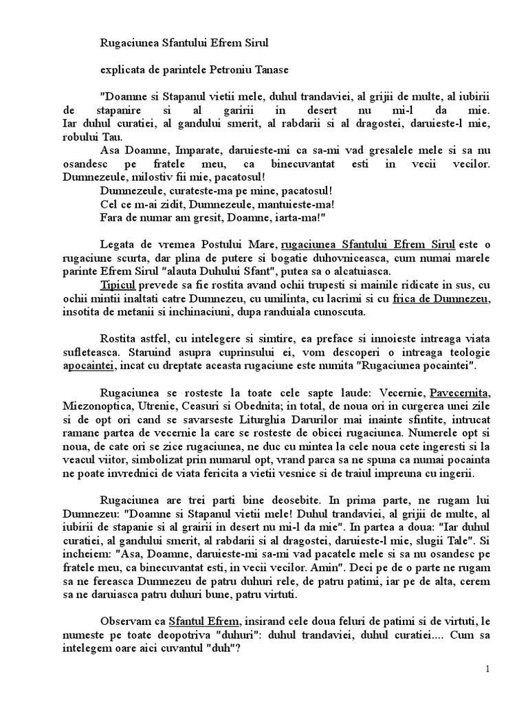 Talcuire La Rugăciunea Sfantului Efrem Sirul Doxologia