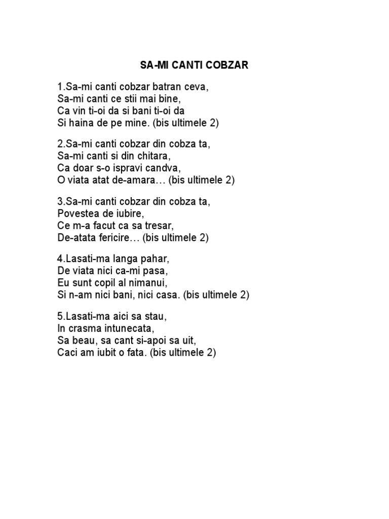 Ion Zlotea Sa Mi Canti Cobzar Batran Lyrics Versuri Karaoke Chords Chordify
