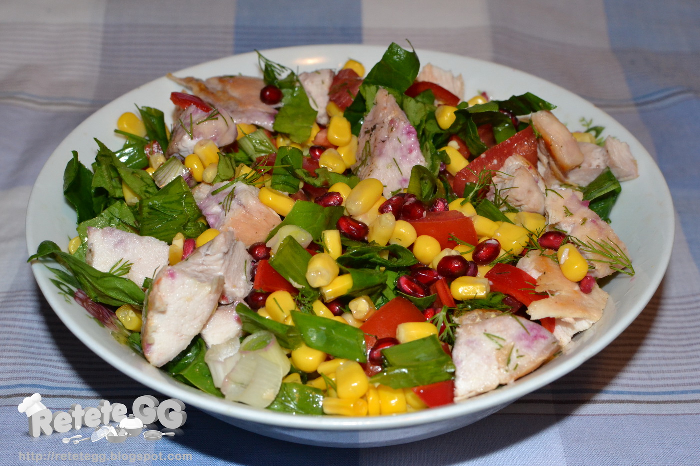Retete Gustoase Si Garnisite Salata Cu Pui Rodie Si Porumb