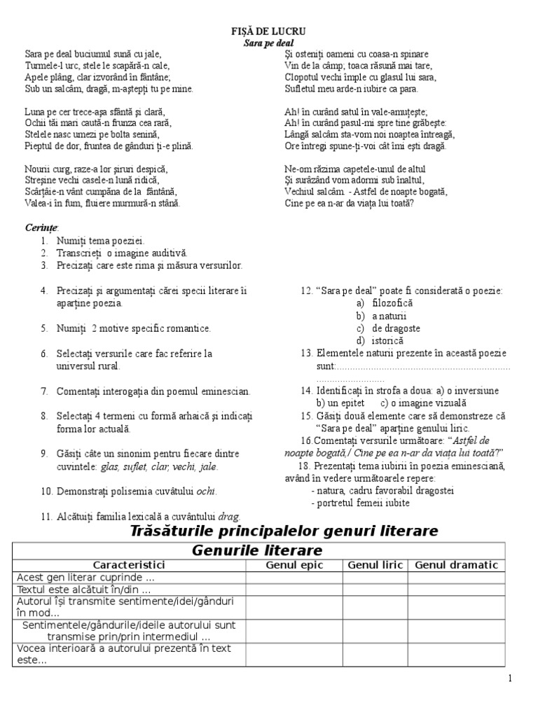 Fisa Lectura Sara Pe Deal Doc