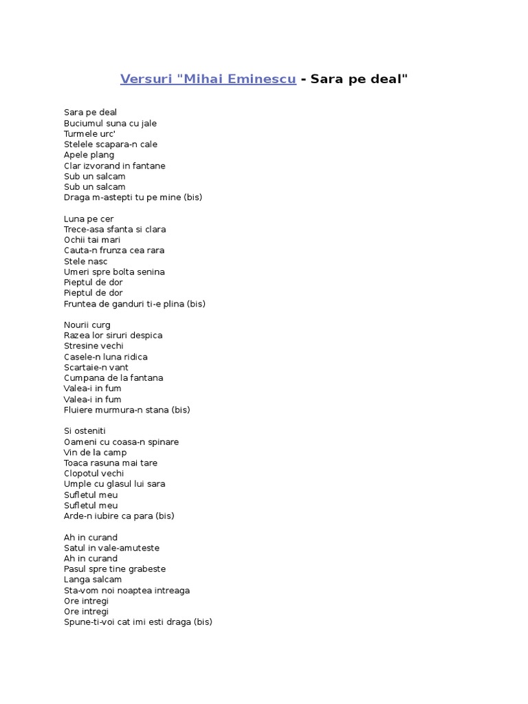 Sara Pe Deal Versuri Mihai Eminescu Conacul Cartilor Facebook