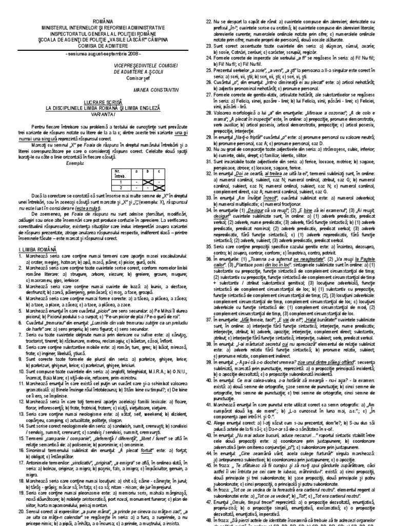 Test 15 Intrebări De Limba Romană Date La Admiterea In Poliție