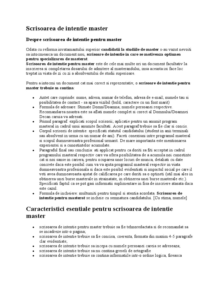 Scrisoare De Intentie In Engleza Pentru Facultate