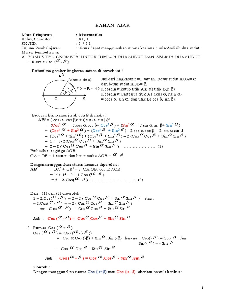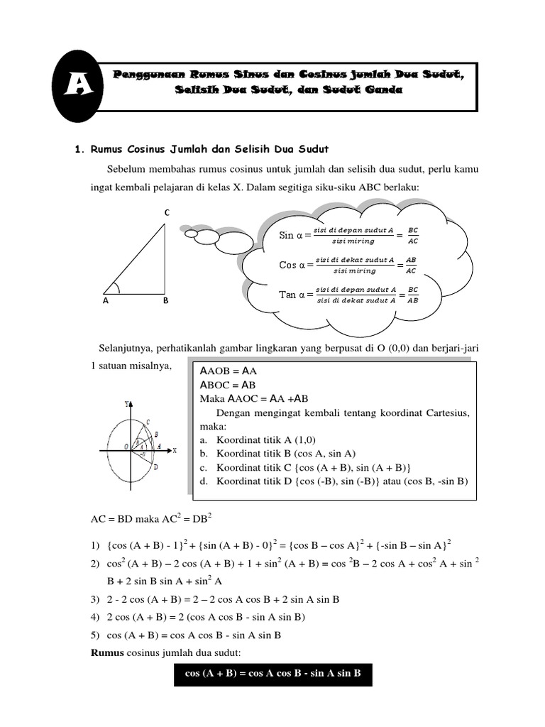 Rumus Jumlah Dan Selisih Fungsi Trigonometri Sinus Dan Cosinus