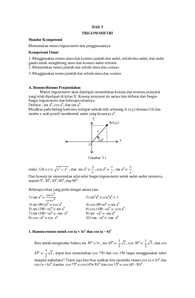 Bab 3 Trigonometri Standar Kompetensi Menurunkan Rumus