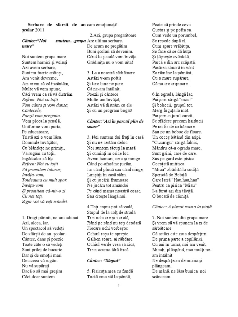 Program Se Serbare Sfarsit De An Scolar Grupa Mijlocie I