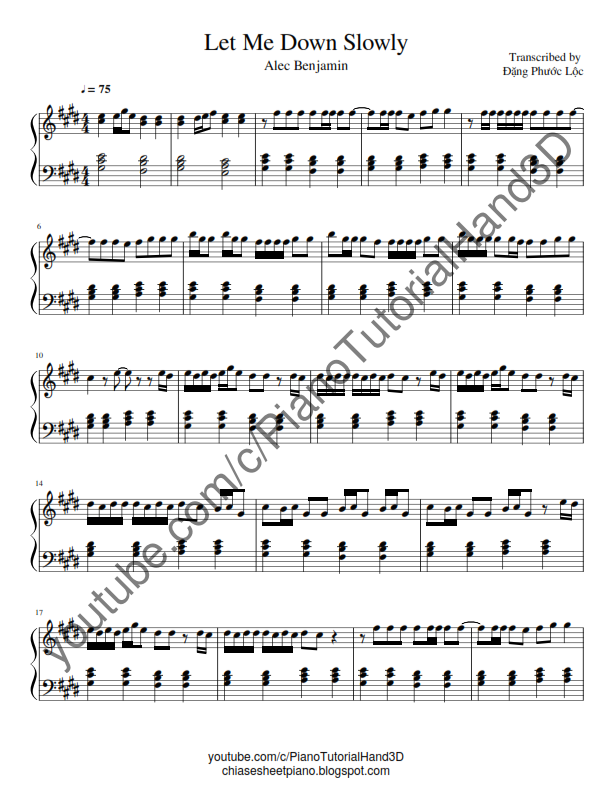 Littletranscriber Let Me Down Slowly Sheet Music Piano Solo In C Minor Download Print Sku Mn0195001