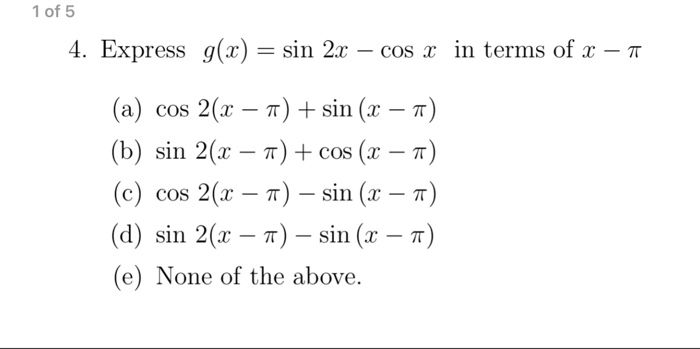 Solved 1 Of 5 4 Express G X Sin 2x Cos X In Terms Of Chegg Com