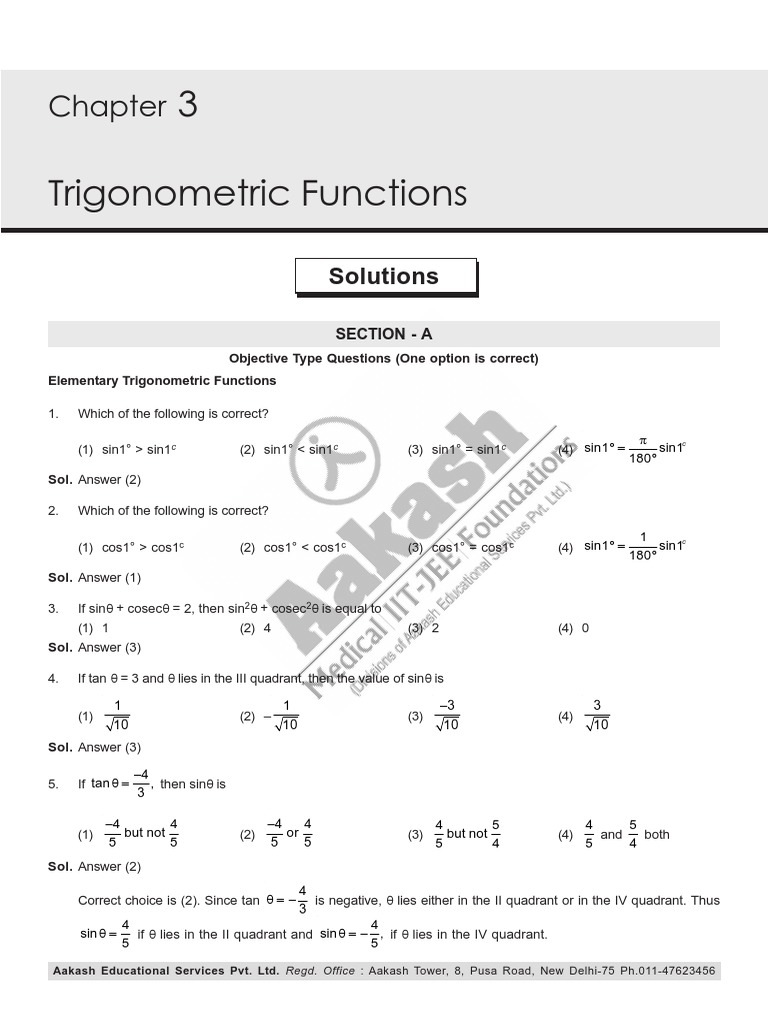 Cls Jeead 17 18 Xi Mat Target 1 Set 2 Chapter 3 Trigonometric Functions Sine
