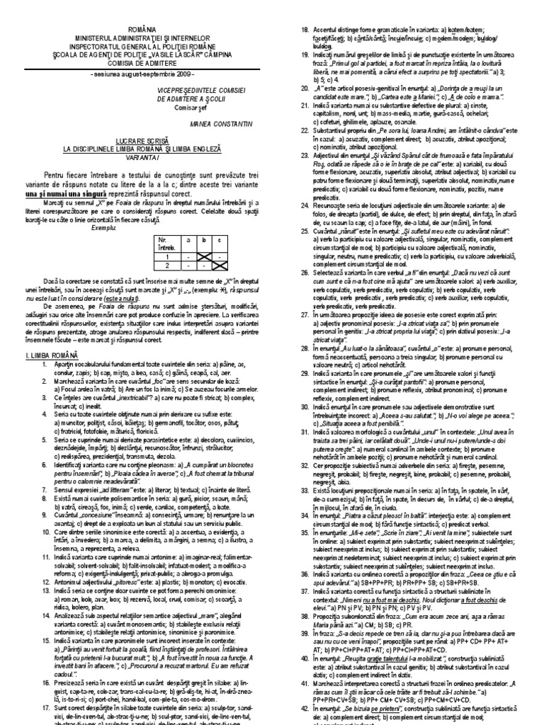 Teste Grila La Limba Romana Pentru Academia De Politie