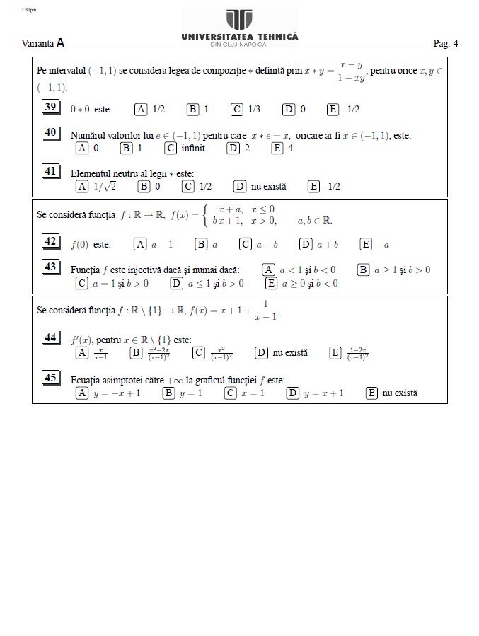 Subiect Admitere Academia Tehnica Militara 2013