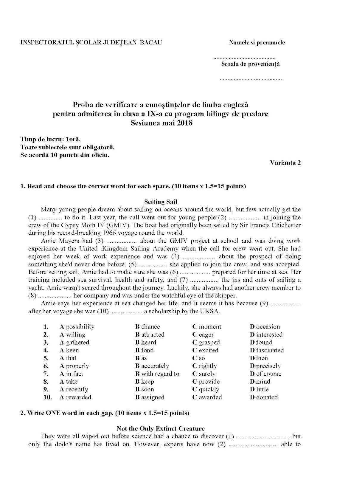 Limba Engleza Subiecte Scris Testare Bilingv 2017 Pdf Languages
