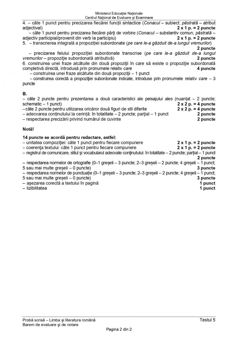 Evaluarea Naţională 2020 Subiecte Si Barem Pentru Limba Si Literatura Romană Varianta 5