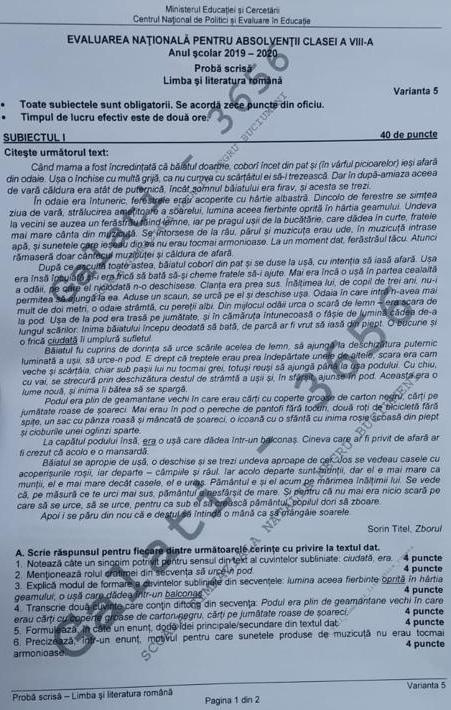 Subiecte Evaluare Națională 2020 Ce A Picat La Limba Romană