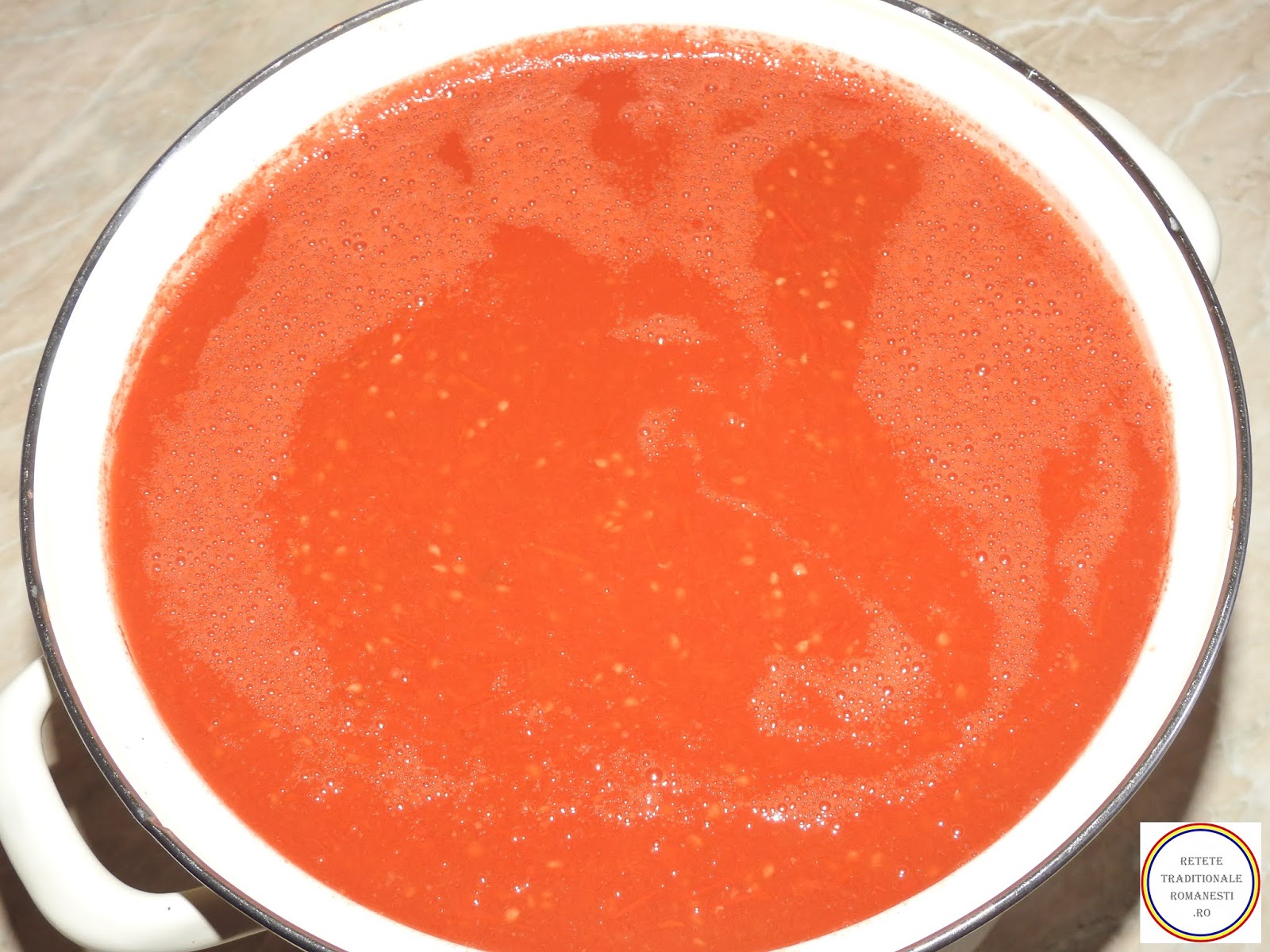 Este principala bautura si suc consumat iarna ne place mult cu putina sare sau ca atare chiar si maria mea mica este mare fan de suc de rosii. Bineinteles ca se poate conserva si in sticle sau borcane mai mici facut cu un aparat sau altul dar metoda. Bun aşa să revenim la sucul de roşii. Lasam sa fiarba la foc iute pana ce se obtine o pasta omogena asemeni smantanii.