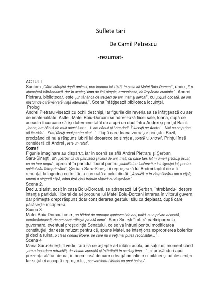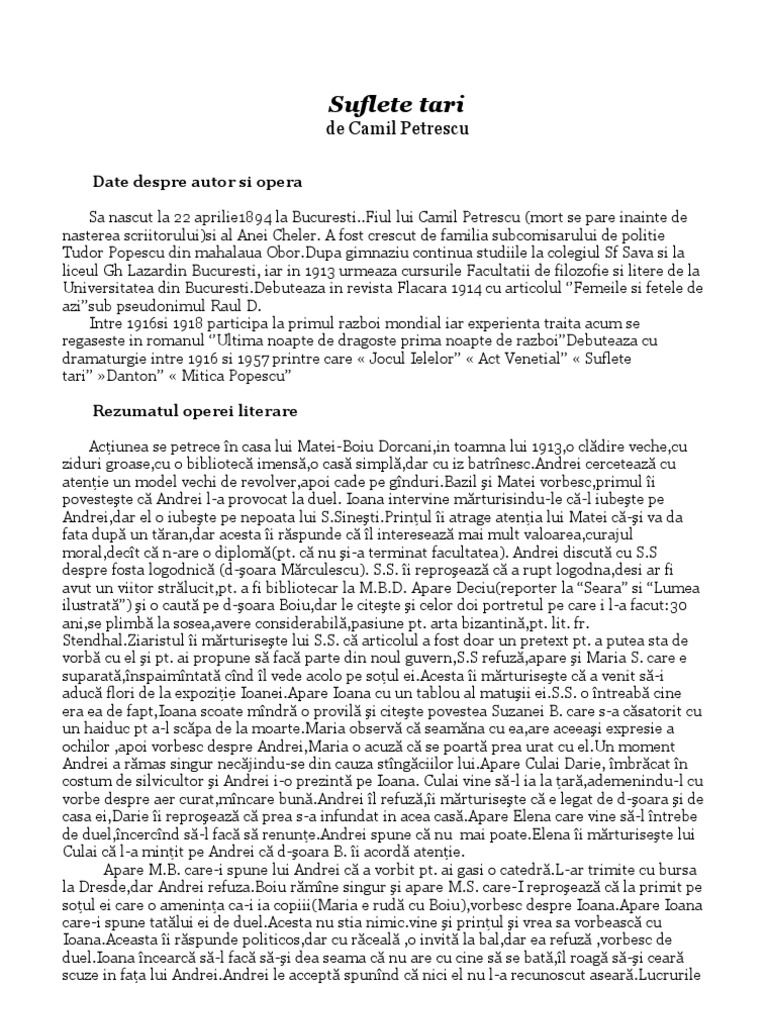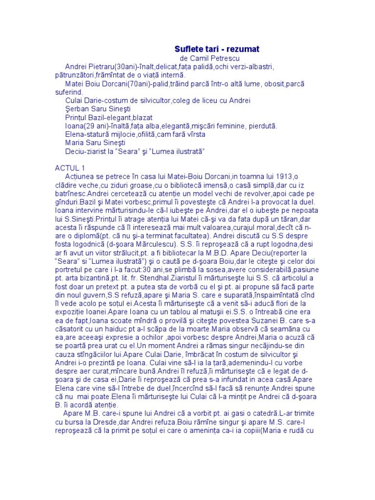 Referat Suflete Tari De Camil Petrescu Romana 232987
