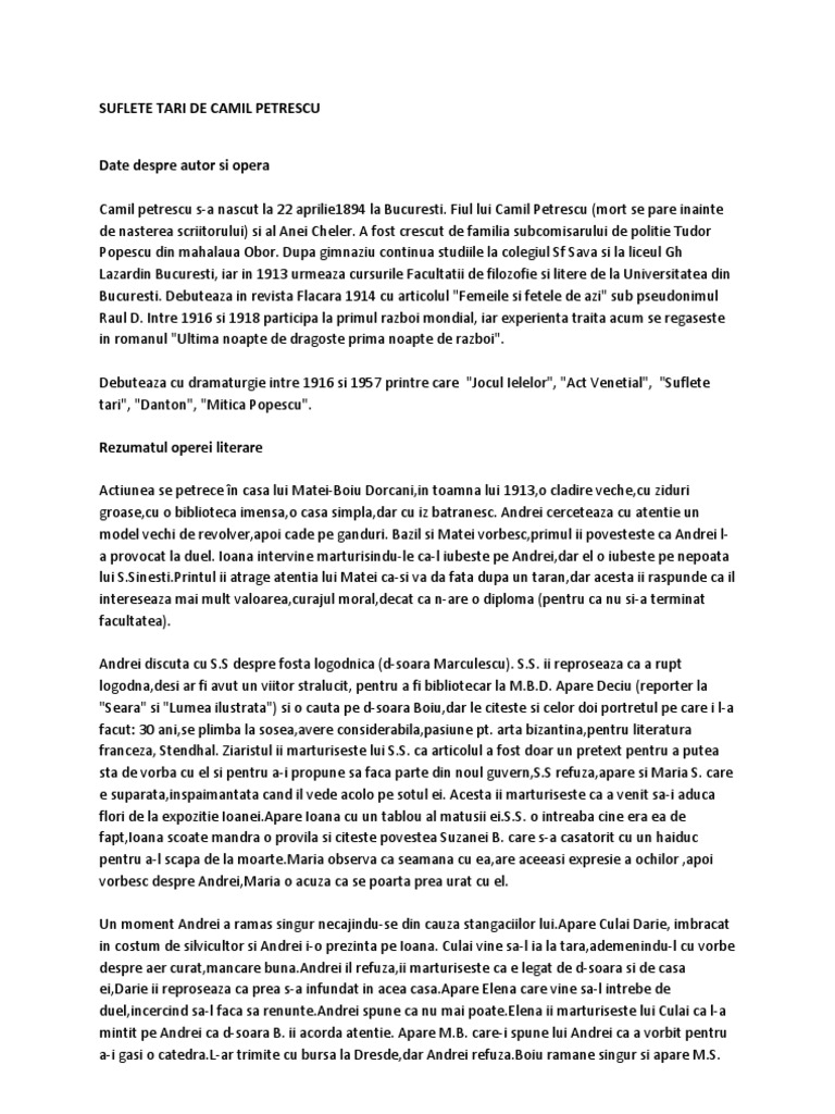 Suflete Tari Camil Petrescu Rezumat Scurt Docx