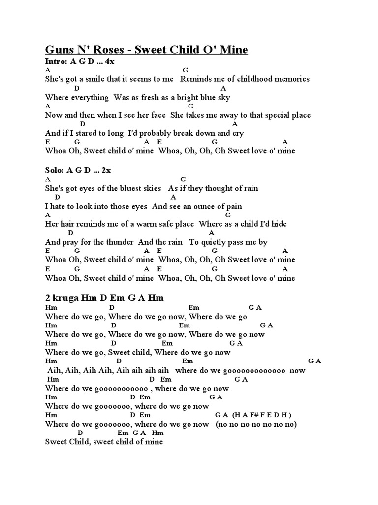 Sweet Child Of Mine Chords Familyscopes