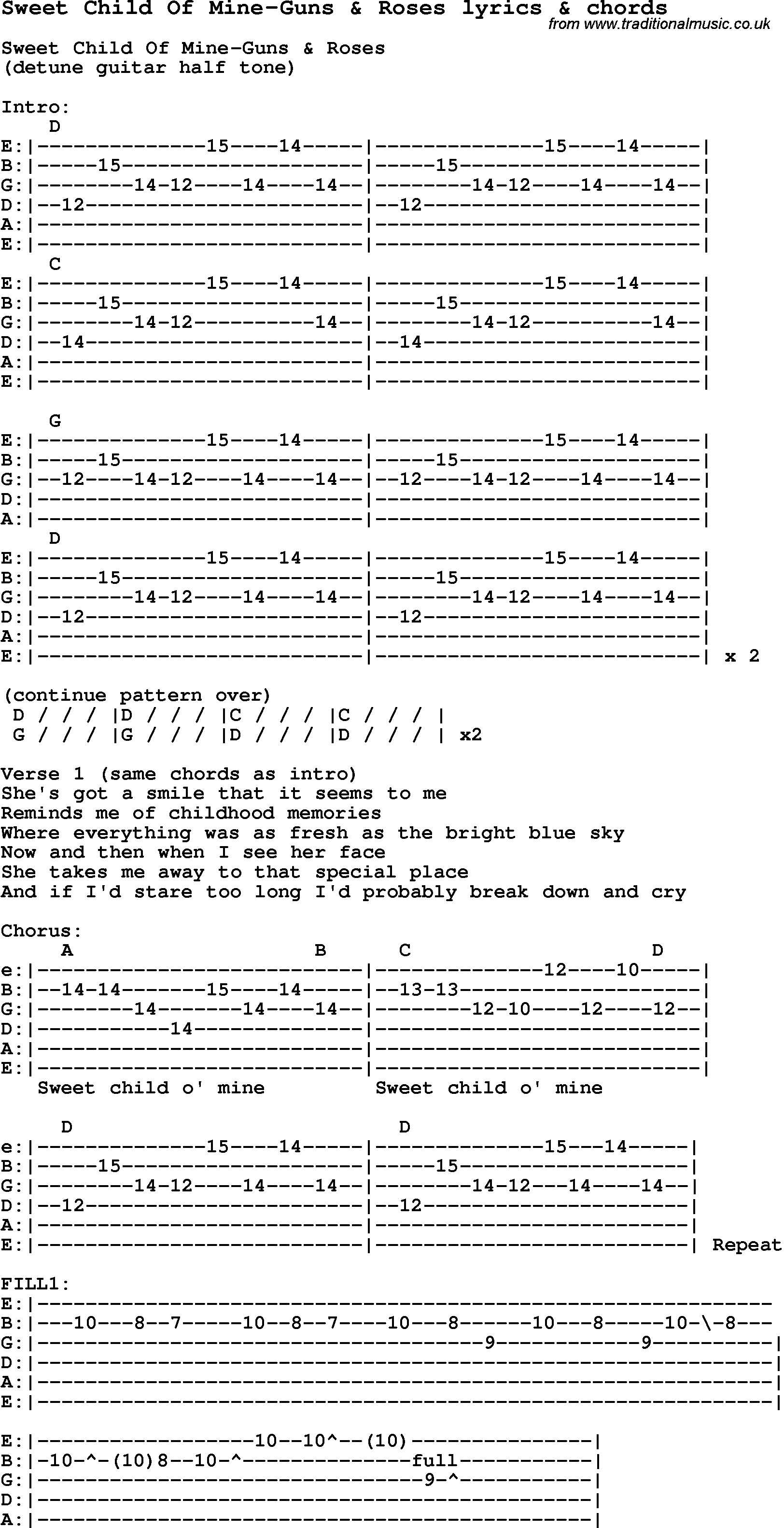 Sweet Child O Mine Chords By Guns N Roses Song Structure Entertainment General