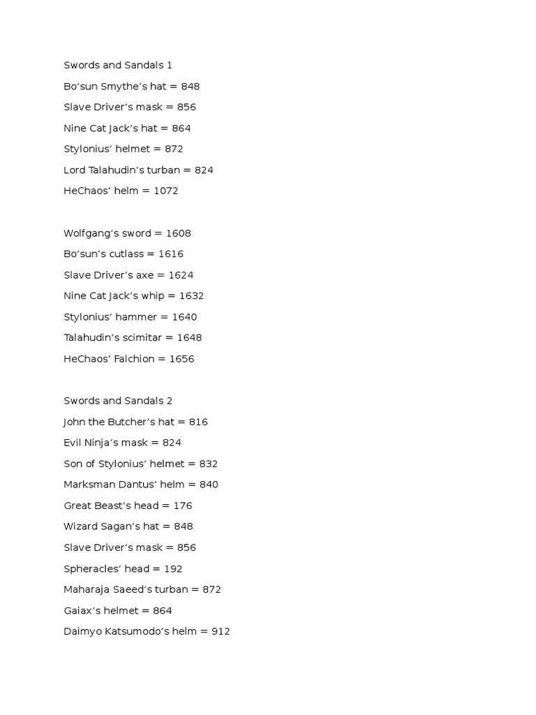 Swords And Sandals 1 2 Cheat Engine Codes Melee Weapons Weaponry