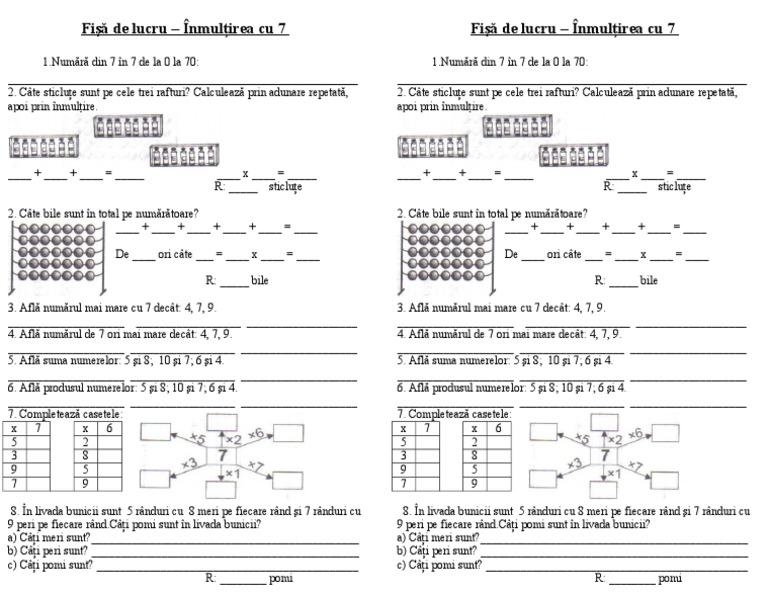 Exerciții Pentru Consolidarea Tablei Inmulțirii și Impărțirii Fișe De