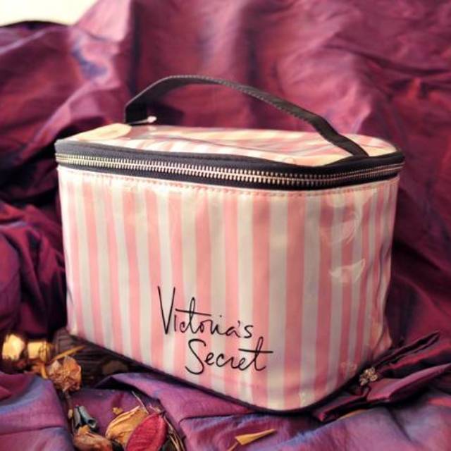 Tas Make Up Cosmetic Bag Victoria S Secret Strip Pink Handle Shopee Indonesia