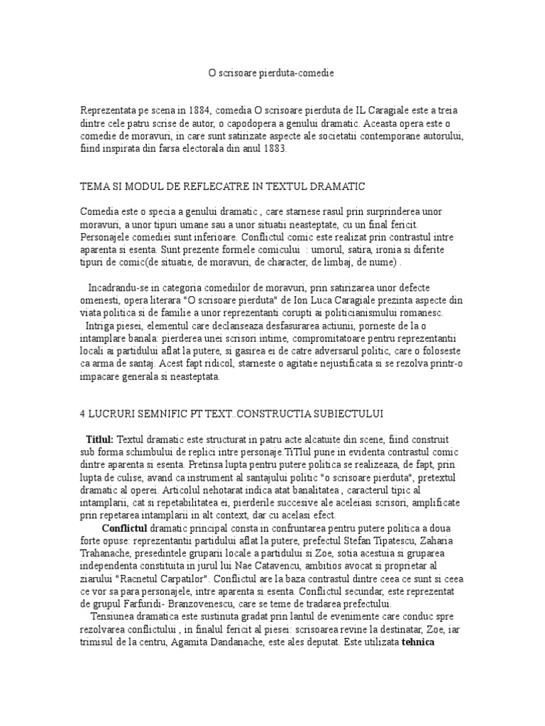 Doc O Scrisoare Pierdută De Ion Luca Caragiale 1 Comedia Elena Balan Academia Edu
