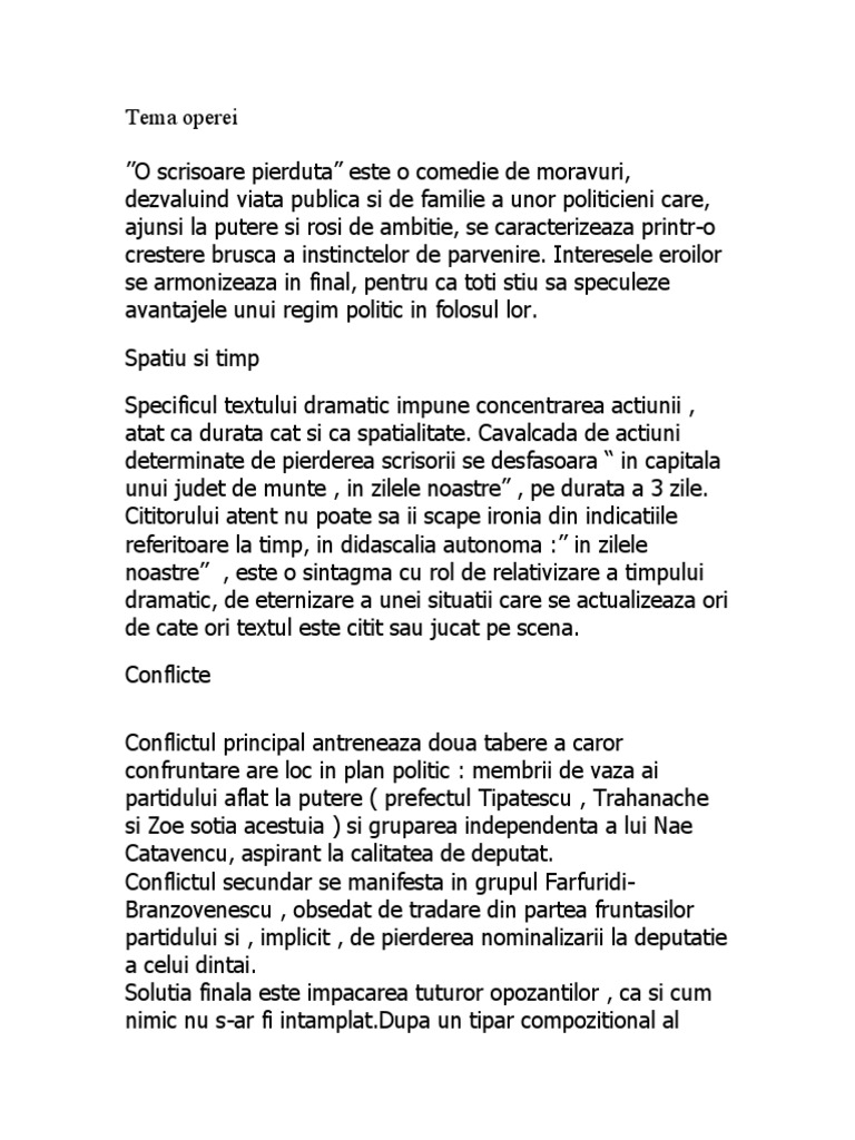 Referat O Scrisoare Pierduta Romana 8936 Regielive