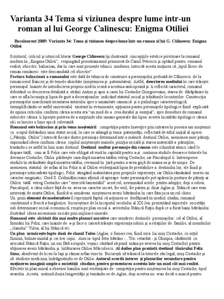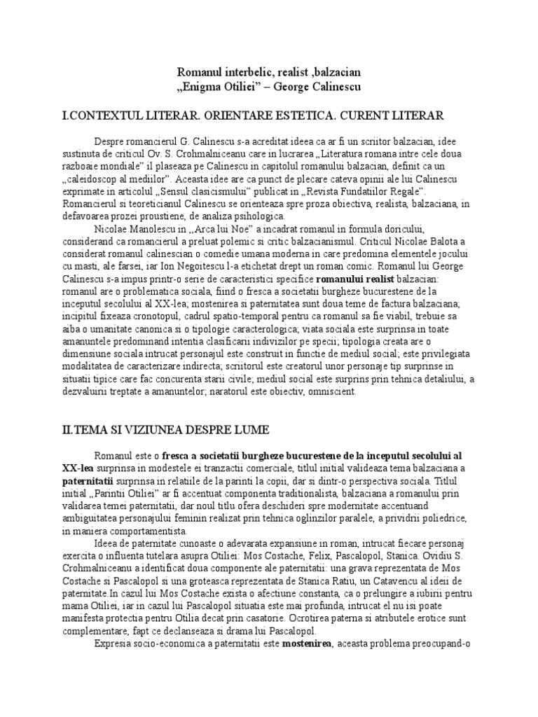 Doc Enigma Otiliei Calinescu Andreea M Academia Edu