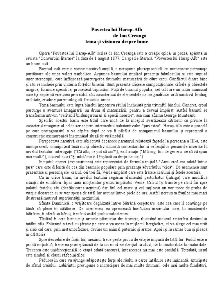 Referat Povestea Lui Harap Alb Tema Si Viziunea Despre Lume 480759 Graduo