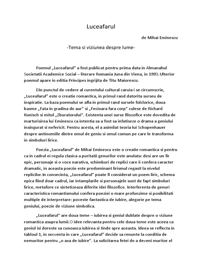 Luceafarul De Mihai Eminescu Tema Si Viziunea Despre Lume Pdf Free Download
