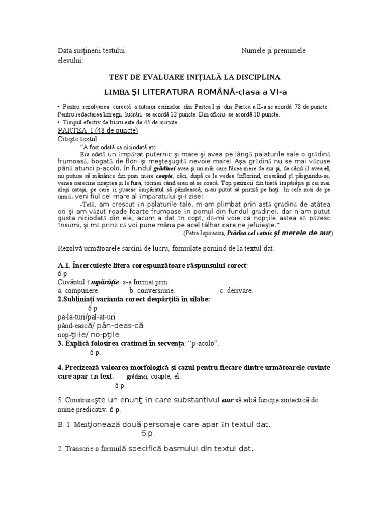 Literatura Romana Teste Initiale Clasa 5 Romana