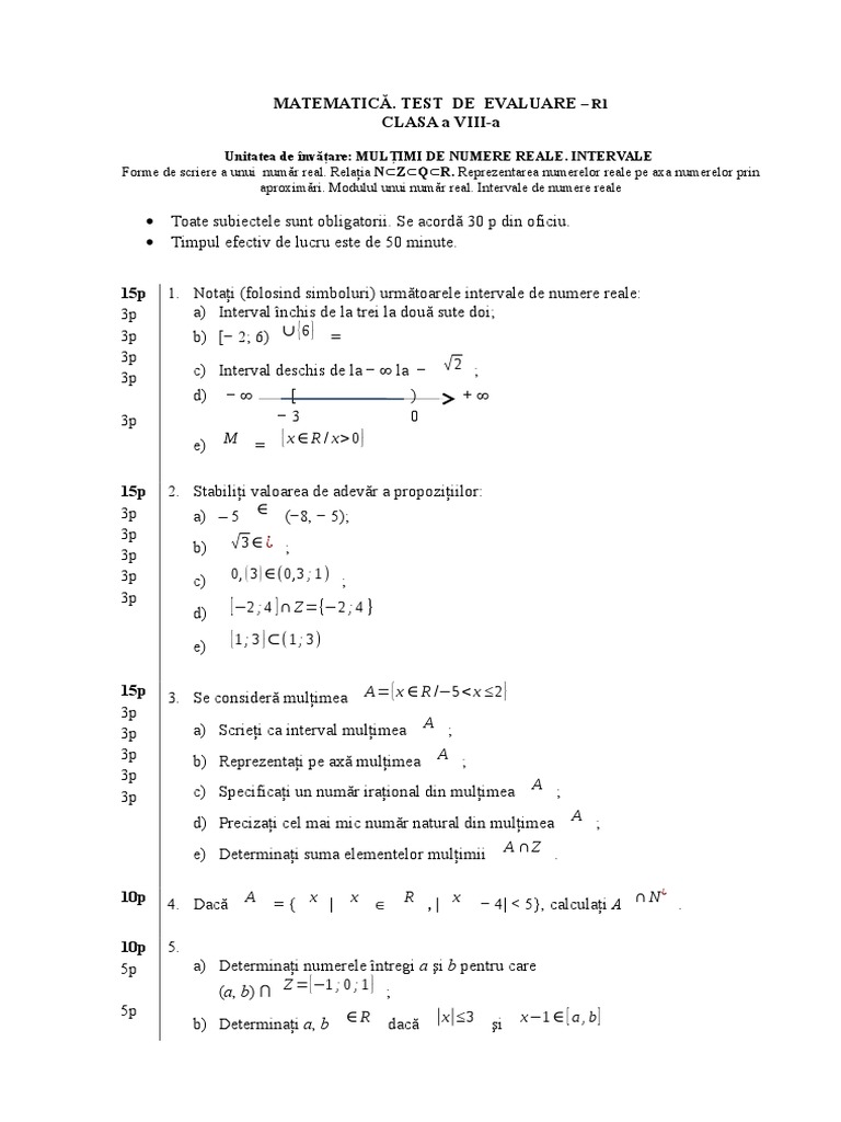 Test Viiia Mulţimi De Numere Reale Intervale