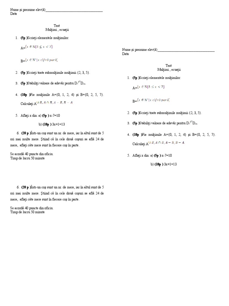 Test De Evaluare Multimi Operatii Cu Multimi 2 Modele Cu Raspunsuri La Final Clasa A 6 A Jitaruionelblog Pregatire Bac Si Evaluarea Nationala 2020 La Matematica Si Alte Materii Materiale Lectii Formule Exercitii