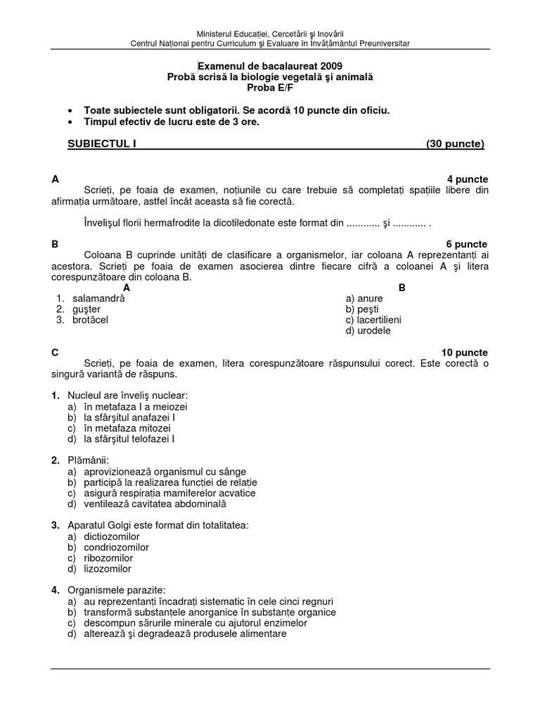 Subiecte Bac Biologie Vegetala Si Animala Online