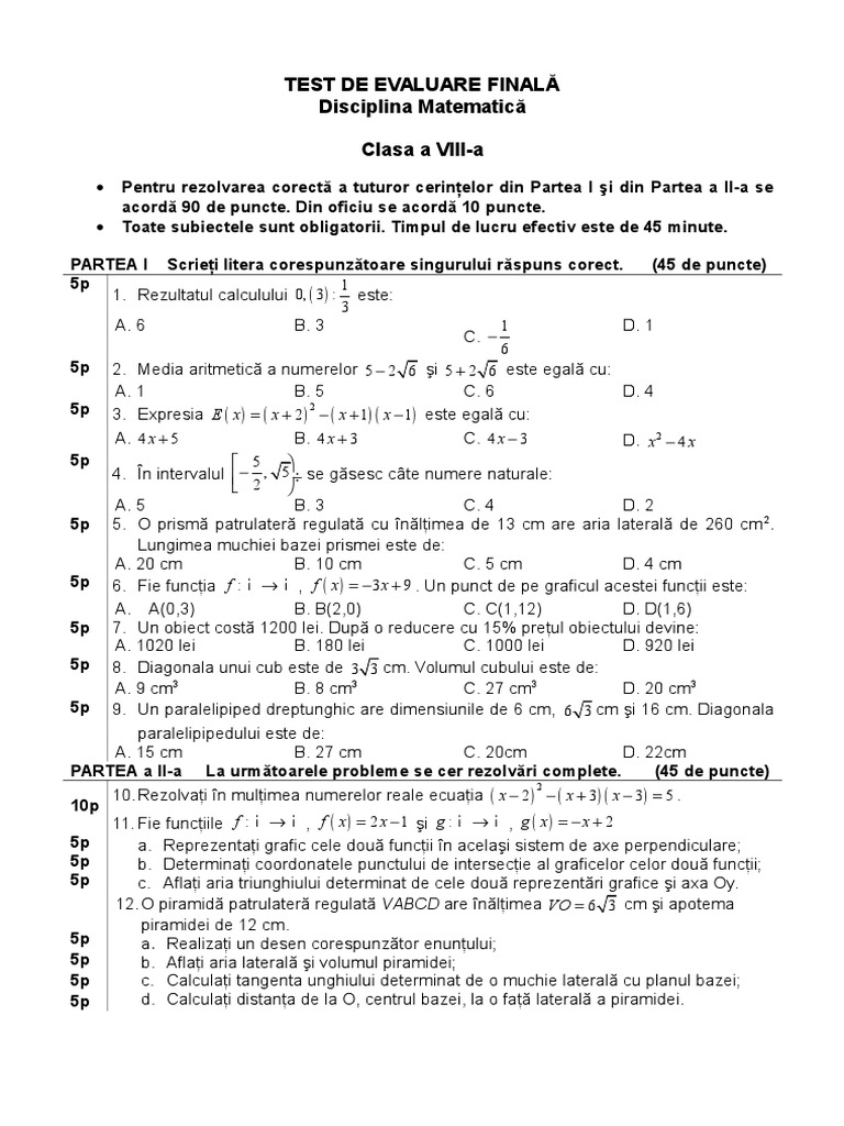 Test De Evaluare Finala Viii