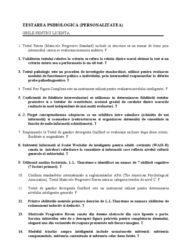 Teste psihologice personalitate cariera cuplu si sex parinti psihoterapie probleme psihice psihoutil. 192 an aparitie. Peste 130 rezultat ridicat 110 130 peste medie 90 110 in medie 70 90 sub medie mai puțin de 70 rezultat scăzut. Mituri despre profesia noastra.