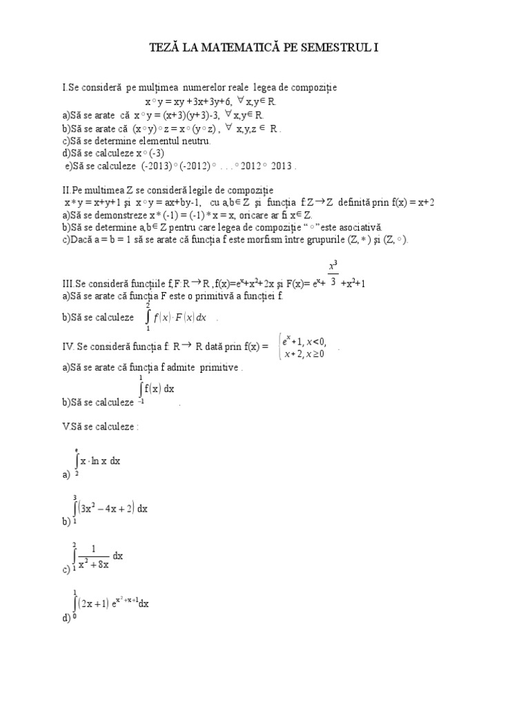Model De Teză Matematică Clasa A Ix A științele Naturii Semestrul I Liceunet Ro